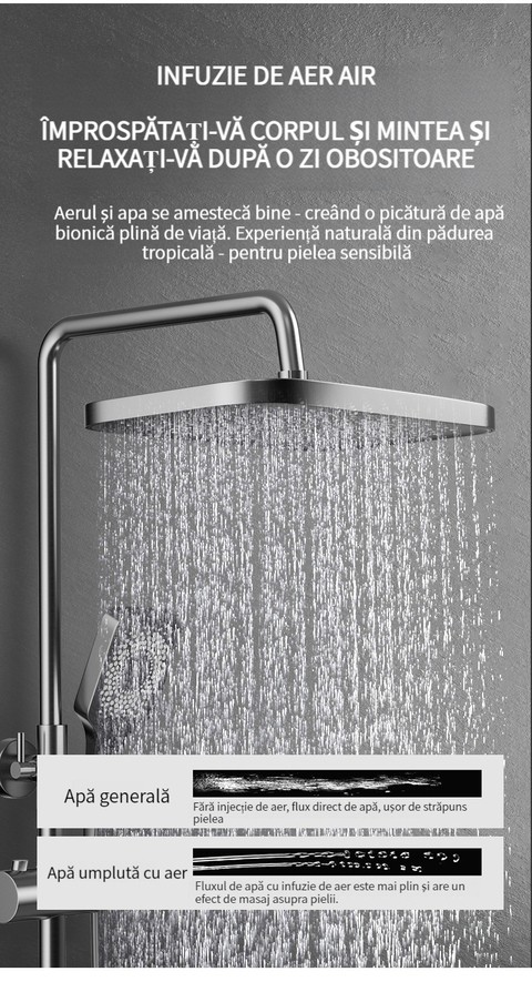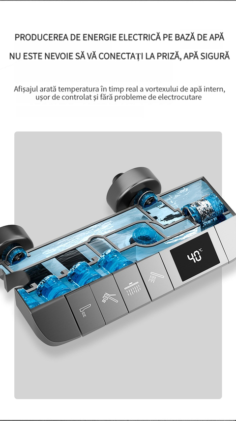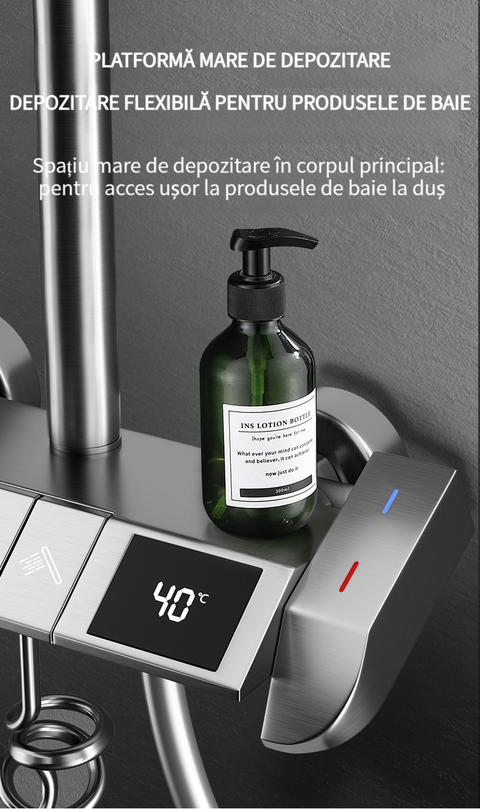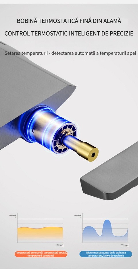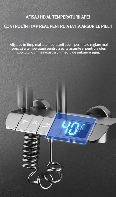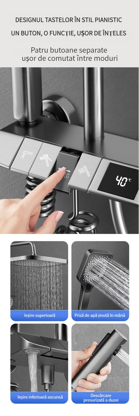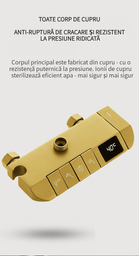 Set de duș termostatic inteligent complet din cupru cu taste de pian, întrerupător independent și afișaj digital HD